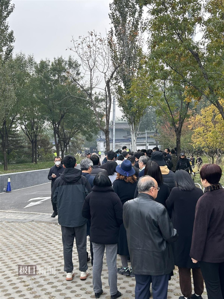 8时50分许,极目新闻记者在八宝山革命公墓附近停车场看到,各界人士已成群结队前来,参加此次告别仪式。在公墓附近的停车场,排起数十米长的队伍等候。送别人群身着黑衣,神色肃穆。